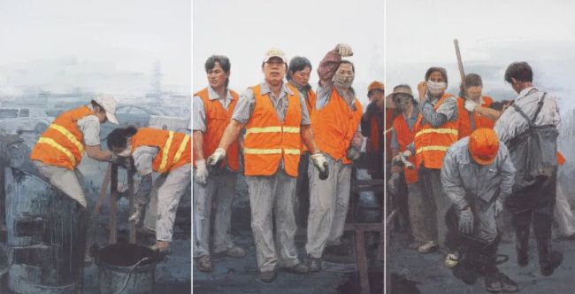 陆庆龙《城市血脉疏通者》布面油画185.5cm×362cm2011年江苏省美术馆藏