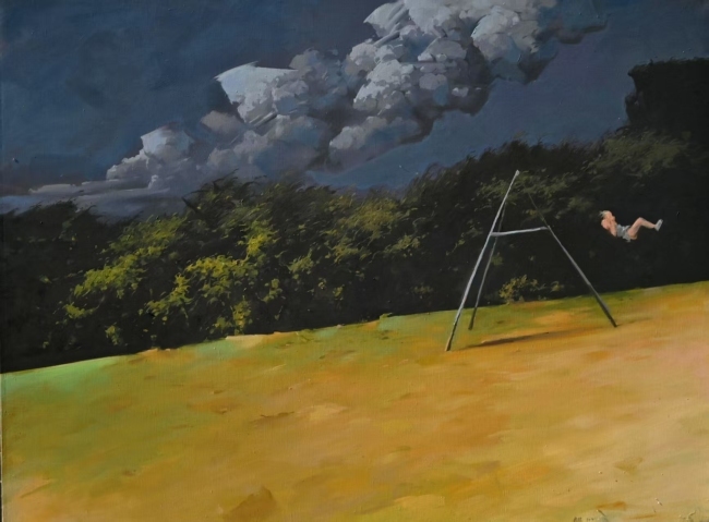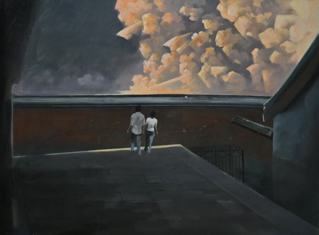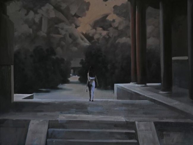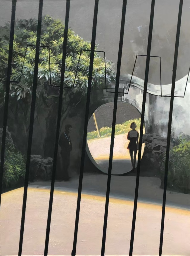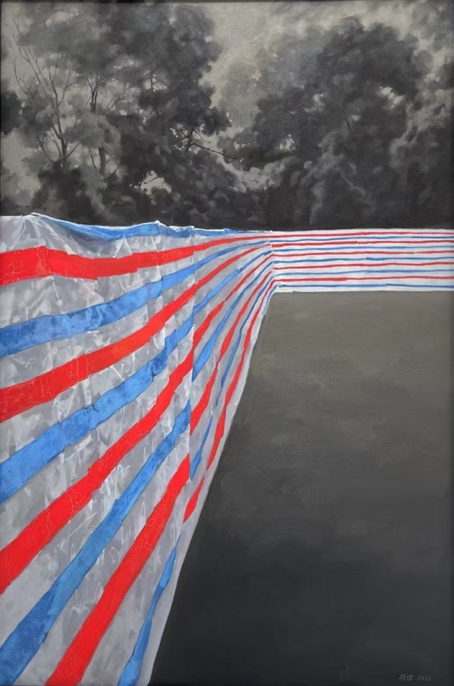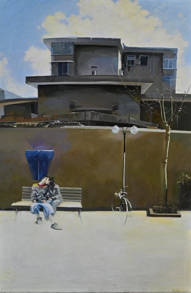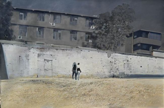 当一幅画作不再满足于描绘,而是开始诘问;当艺术不再止步于呈现,而是转向思辨,我们便与梁宏理的《谁》系列相遇。他的《谁》系列以西安本土图景为基底,通过超现实元素与日常场景的精妙叠合,构建起一个既熟悉又陌生的视觉场域,在那里,现实与超现实相互渗透,个体与时代彼此映照,存在与虚无持续对话,这种创作路径并非简单的形式实验,而是对个体经验的微观叙事。