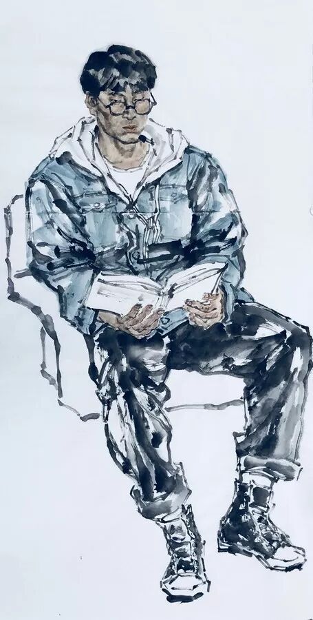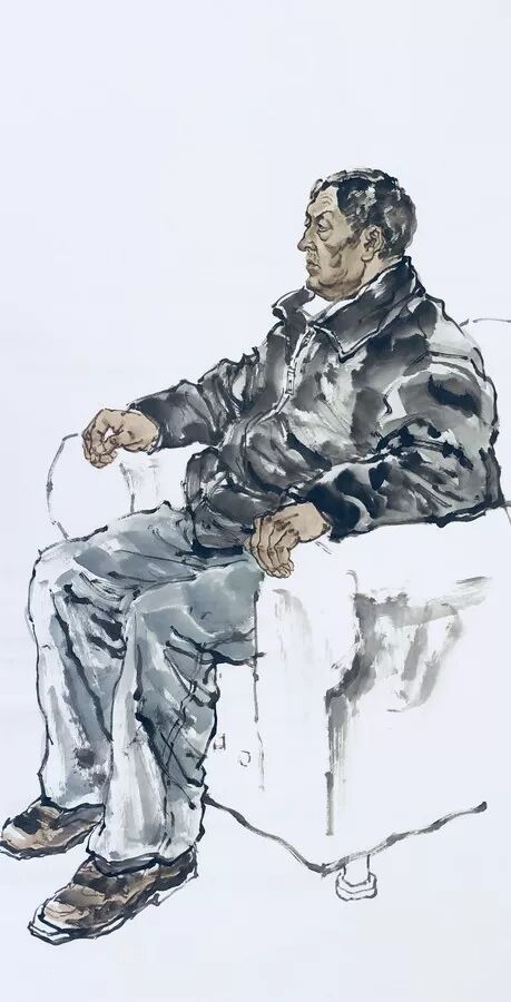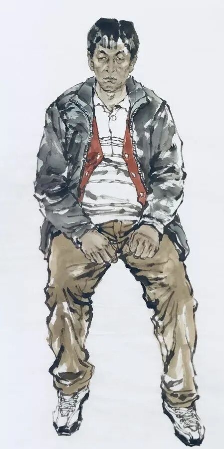 我画人物几十年,对国内省内称得上人物画家的也算是了如指掌,没听谁说过同君画人物。我给大三人物班上课问起之前谁讲人物课,同学们说王同君老师。画花鸟的教人物画我没放在心上。我和同君也是少联系,一日开会见面寒暄,坐在一起。他打开手机相册,指着水墨人物写生图片对我说“提点意见”。坦白地讲,我真的很惊诧,同君的水墨人物,绝对人物画的专业水平,我画亦不过如此。同君的人物造型,笔墨线条,游刃有余,驾轻就熟,非一日之功,岂是出自花鸟画家之手?山水画追求“气韵”,花鸟画追求“情韵”,人物画追求“神韵”。“神韵”固然是眉目传情,顾恺之说“尽在阿睹中”,手和脚的肢体语言也是“神韵”的组成部分。同君刻画人物形象精准生动,繁简入微,张弛有度,手和脚处理得当洗练,模特年龄、身份、性别拿捏的尺度沉稳果决。这已是人物画家必备的功力和技巧,同君却不露声色的易如反掌,如何有此秘籍?