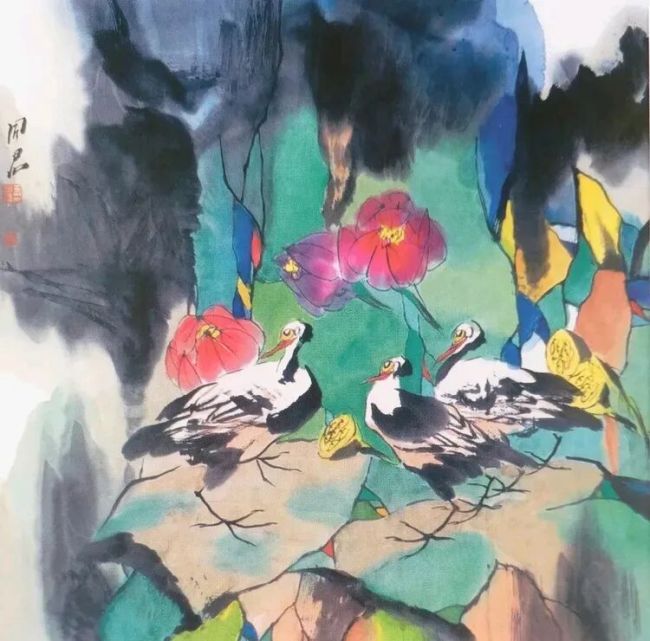 人居北方,名扬国内,业界熟知同君的花鸟画,是以北方尤其东北大地的风情为主题,描写山花野草之莽莽不衰,摹移白山黑水之皑皑风骨。同君的花鸟画写意挥洒间,不张扬,不诡谲,刚柔并济,宁静、安详、诗意、温暖。人的品行投射到作品中,就是一个人的精神写照,因为同君性格内敛,话语不多,投缘可欢,任何场合都是矜持不苟,思者多慎,静观其变。我以为不张扬者内心饱满充盈,甚扬者心虚欲盖弥彰。同君的进步与成就,领先于同辈同道,不循常习故,不囿于成见,学院派的教学主张就是以继承和发展为己任,创新是传承和弘扬传统的血液。承前启后需要勇者的胆识与魄力,同君的努力改变了他的地位和处境,身为鲁迅美术学院毕业的佼佼者,深得哈尔滨师范大学美术学院青睐,由此走上教学的讲台,开启了新的艺术历程,授业解惑,课徒水墨花鸟画,莘莘学子,桃李满天下,教授、导师名利双收,高校的中坚力量。