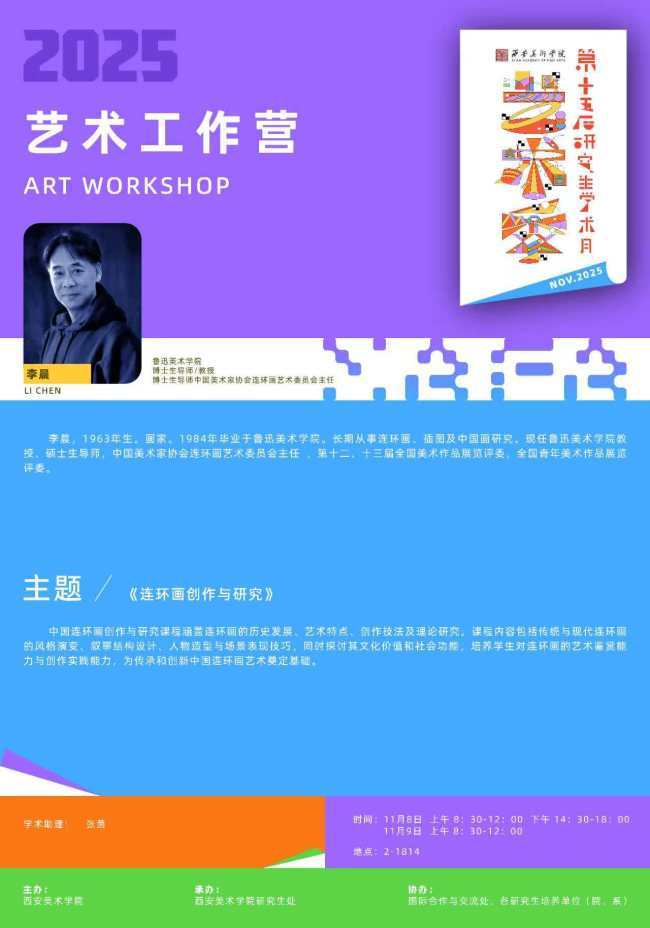 近日,以“承序与构建”为主题的全国高等艺术院校中国画教学研讨会暨全国艺术院校大学生论坛在西安美术学院圆满举行。中国美术家协会连环画艺委会主任、鲁迅美术学院教授、博士研究生导师李晨受邀出席,围绕中国画创作与连环画教学研究展开系列学术交流活动,为现场师生带来兼具理论深度与实践价值的思想盛宴。