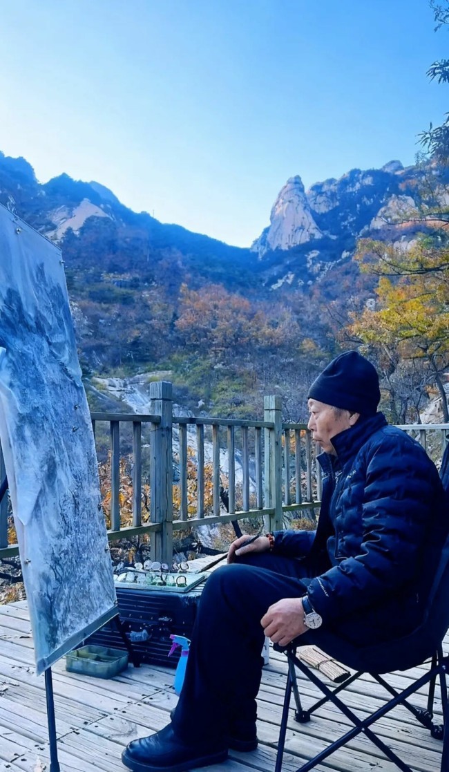 秋末的泰山,宛如一幅绚丽多彩的画卷,在天地间徐徐展开。山林间,枫叶似火,银杏金黄,与苍松翠柏相互映衬,勾勒出一幅层次分明、色彩斑斓的绝美风光。雄伟厚重的山体在秋阳的照耀下,散发着迷人的魅力,吸引着无数文人墨客前来探寻、描绘,中国美协副主席李翔便是其中一位。近日,李翔第五次登上泰山,开启了一场写生创作之旅。