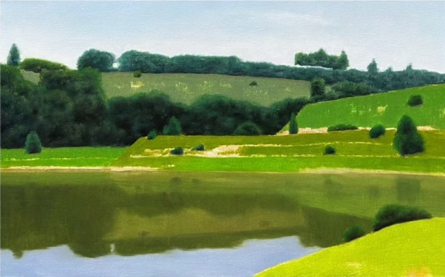 《池塘边的风景》布面油画42cmX68cm姜向东2025.09