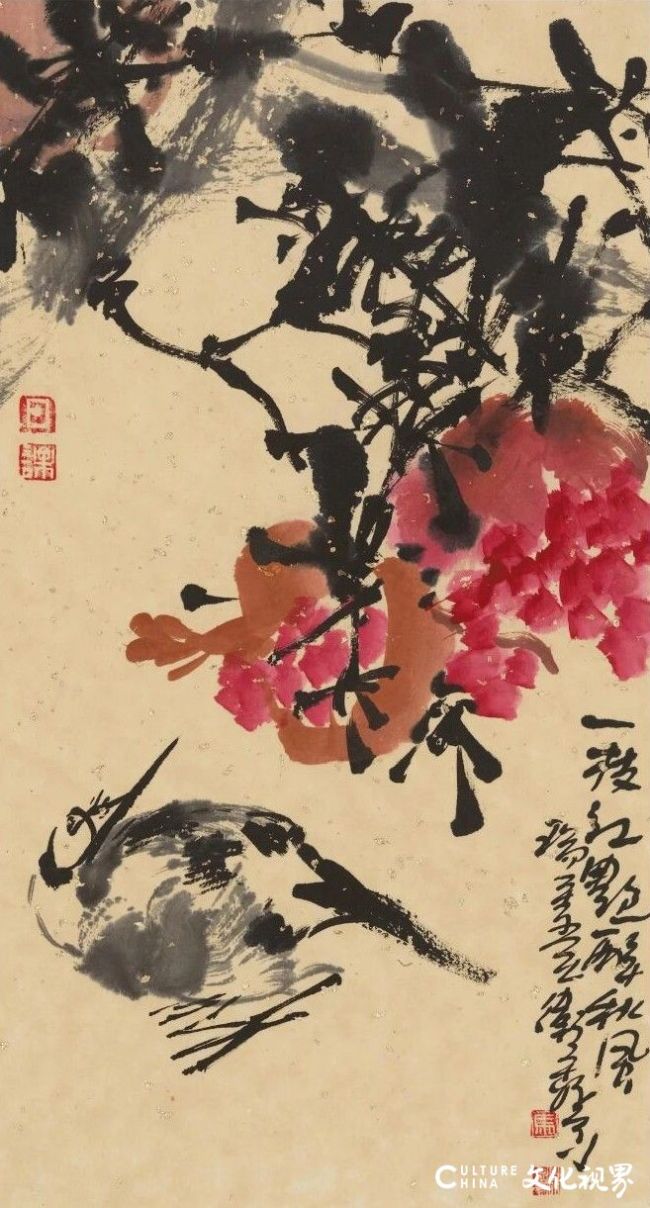 在中国当代画坛,马卫巍先生是一位难得的、年轻的复合型艺术大家。他集画家、作家、文化学者、美术教育家、理论家于一身,这种多重身份的叠加与互渗,使得他的大写意花鸟小品呈现出别具一格的精神气象与美学品格。观赏他的作品,我们不仅仅是在欣赏一种视觉形式,更是在进行一场跨越时空的文化对话,一次深入灵魂的精神漫游。