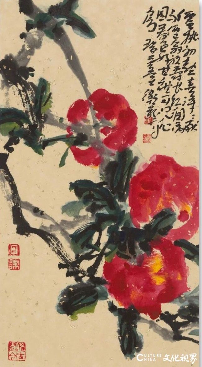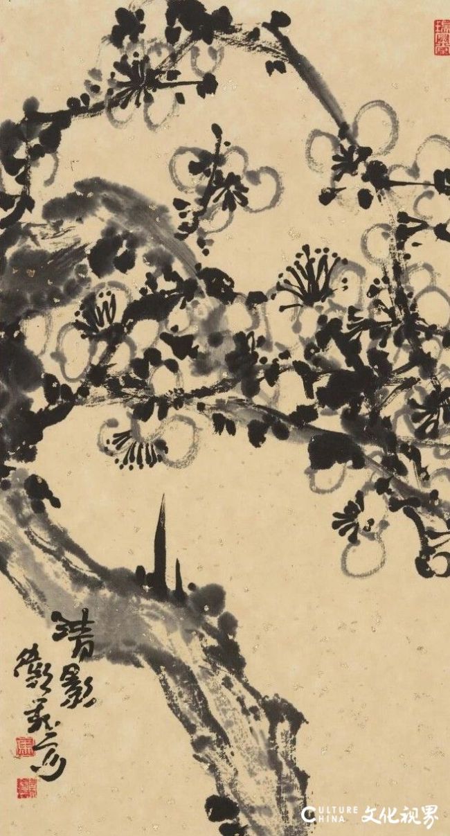 马卫巍的大写意花鸟画,首先打动观者的是那奔放不羁而又精准传神的笔墨语言。他的用笔,既有金戈铁马的豪迈气势,又有春风拂柳的细腻柔情。在他的笔下,一枝老梅的枝干可以苍劲如铁,几朵花瓣却柔美似水;一只寒雀的形体可以简约到近乎抽象,眼神却灵动如生。这种对笔墨的高度掌控力,源于他数十年来对传统的深入研习与理解。作为美术教育家与理论家,他对中国画笔墨体系的认知不是碎片化的、表面的,而是系统的、本体的。他深知,笔墨之于中国画,非仅造型手段,更是精神载体。在他的小品中,每一笔都不仅是形态的构建,更是气韵的流转,是画家心绪的直接流露。