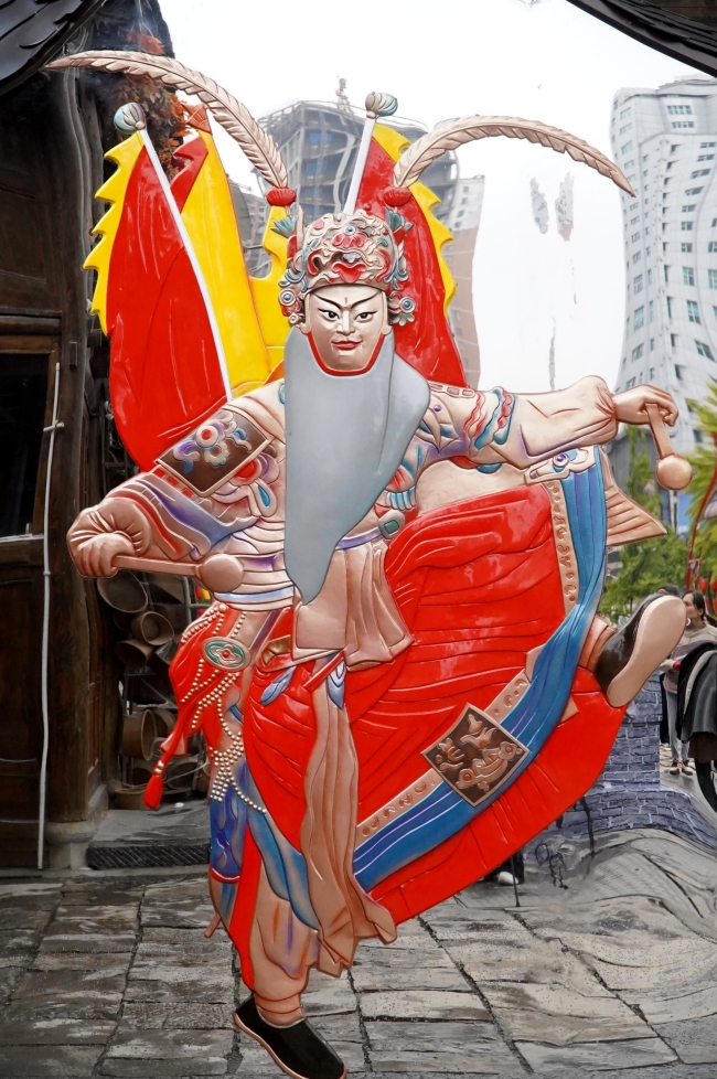 而作品最具巧思之处,在于其镜面不锈钢的现代语言。“它像一面镜子,当观众站在作品前,既在看神将,也在看自己。身后的古城、天空、树木四季的变化,都倒映其中,融为一体。”王教授描述道,这使得作品不再是单向的观看对象,而是与环境和人产生互动的生命体。