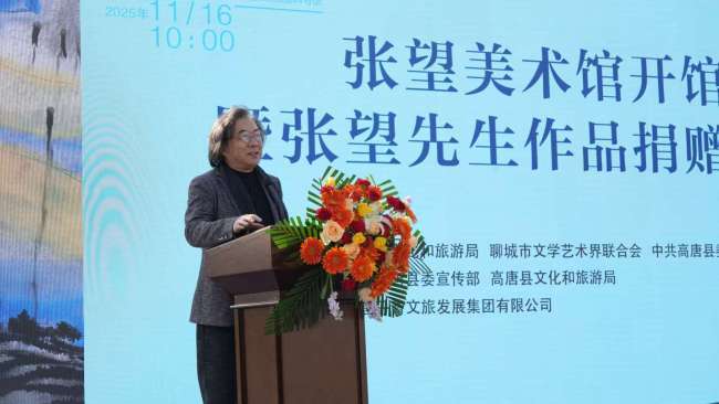 张宜在致辞指出,张望先生将其凝聚心血的代表性作品无偿捐赠,建立美术馆,这不仅体现了一位艺术家的深厚乡梓情结,更是一种深沉文化情怀的体现,一种无私奉献的精神,一种对艺术传承和社会美誉的崇高担当。希望张望美术馆成为激发创作灵感、促进艺术交流的沃土和美誉传播的重要基地,为推动山东美术事业的高质量发展注入新的活力。