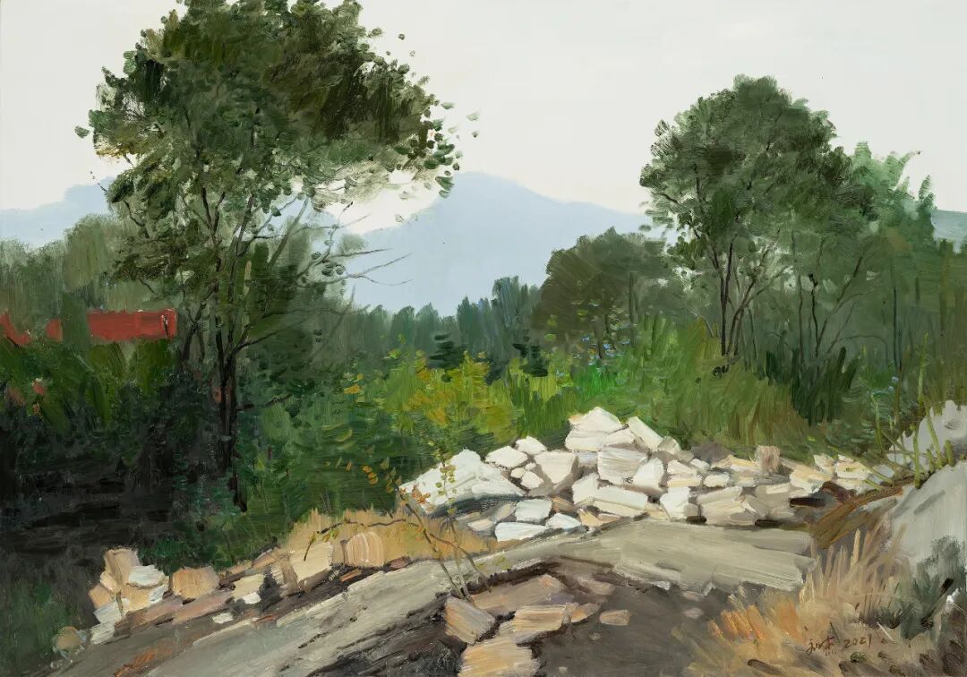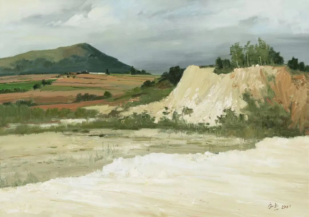 刘杰《登封雷家沟写生》油画60cm×80cm