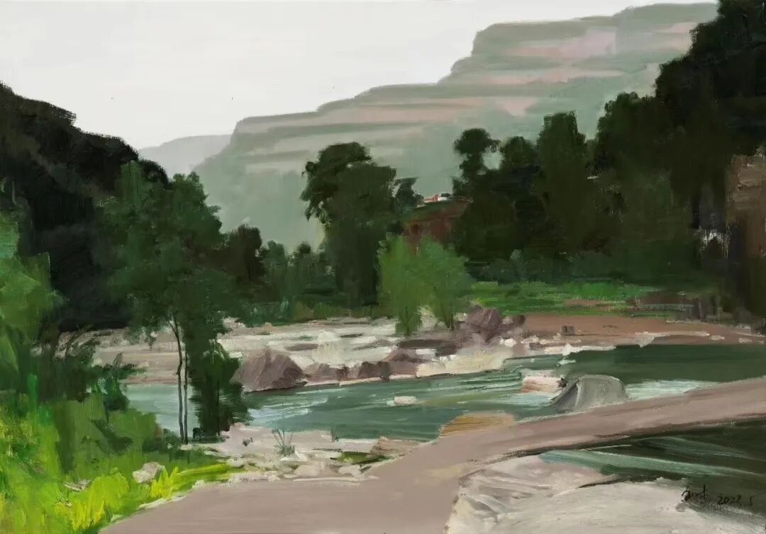 刘杰《信阳睡仙桥写生》油画70cm×100cm