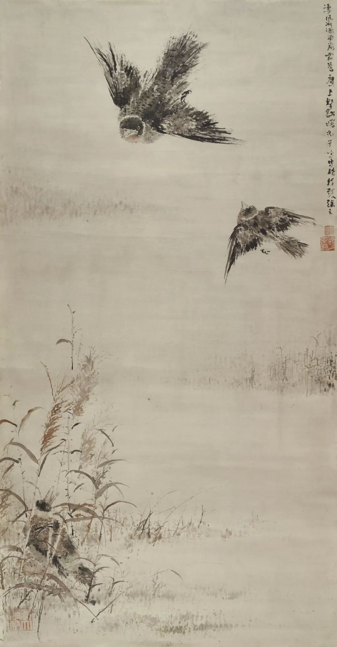 《惊雁东南飞》240×124cm纸本指墨2025年