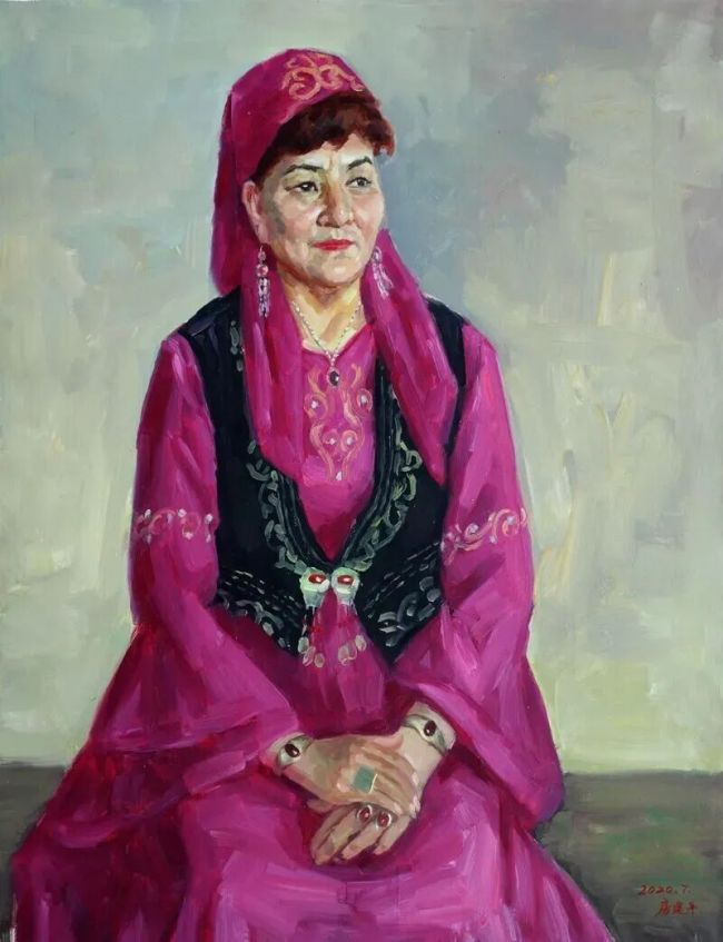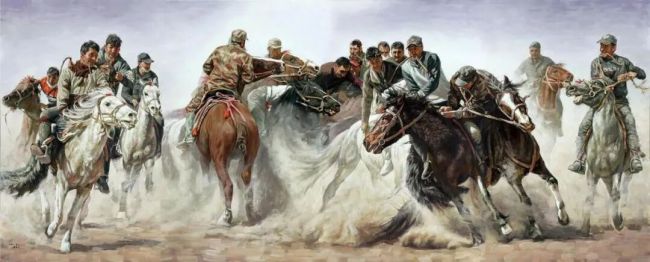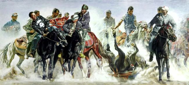 房建平先生的油画创作,则试图把两者打通,追求一种人与画既视角同在,伸手可触;又象外有意,寻味可得,有一种令人浮想联翩的诗化效果。譬如《叼羊》,突出了马的亢奋与人的刚烈,把民族的剽悍与民间的野逸味,表现得淋漓尽致,既有带入感,又有激发联想的画外意义:民族和谐!许多大场面的画作在追求生活真实的同时,也用细节表达诗性的存在。特别是他的肖像画,更是如此,有情有味,耐看。因此,摄影的真,永远表达不出肖像画除真之外的丰富内含。蒙娜丽莎的微笑,给人的想象是无限的。