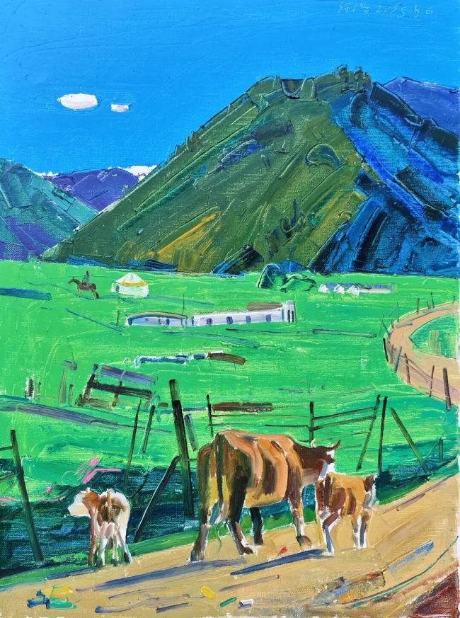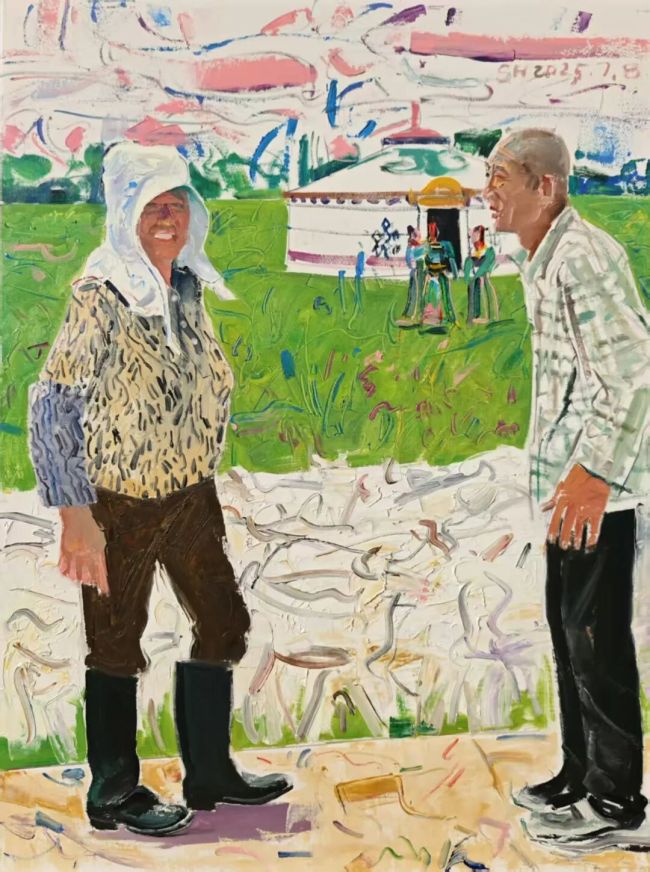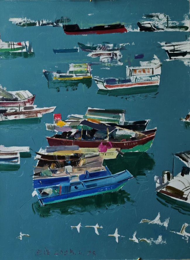 年逾古稀的孙浩,依旧怀揣旺盛的艺术探索热情。他精妙融合中国油画的表现形式与中国画的笔墨意趣,让每一幅作品都成为承载喜怒哀乐的情感容器。其对画面的驾驭能力令人赞叹,笔下之作恰似一把把心灵钥匙,总能精准触动观者内心的柔软之地。凝视画作时,画面节奏带来的强烈感官冲击,不仅予人直击灵魂的震撼,更能让观者在潜移默化中实现审美境界的进阶。