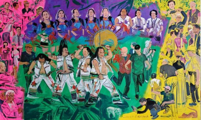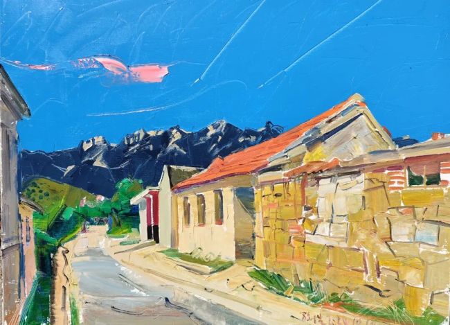 色彩是孙浩画作中极具表现力的元素。湛蓝的天空、翠绿的草地、深沉的红色与明黄的物象相互交织,赋予画面鲜明的节奏与韵律感。生活里的人群活动与人物动态,皆以类似刀割剪纸的独特形式呈现。这种看似“违和”却恰到好处的手法,精准捕捉了生活的节奏,生动外化出他丰沛的内心世界。创作中,他大胆摒弃冗余的技法与元素,积极吸纳全新的艺术语言,深刻揭示出油画形式语言的丰富内涵。