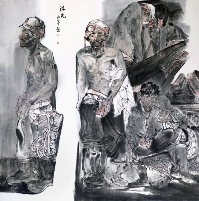 路军有才,笔墨间透着西北汉子的豪迈之气。路军创作多以现实人物为题,有牧人劳作,有矿区生活,有集市小景,也有南疆少数民族风情民俗。无论题材如何转换,简括的章法布局、稚拙的人物造型、凝重的色彩、厚重的笔墨所凝造出的亲和苍厚,平实朴拙的审美气息,已成其个人风格的鲜明标识。