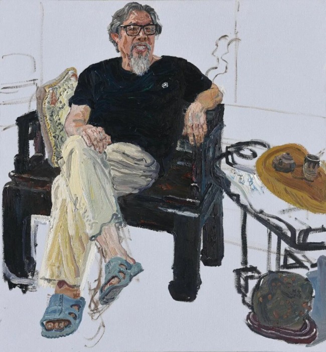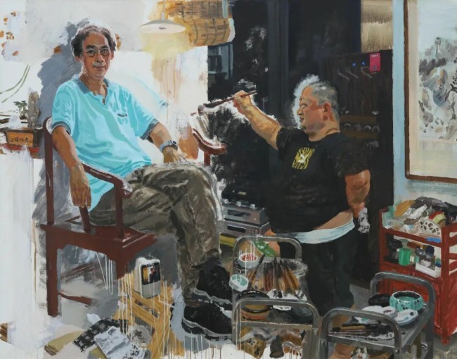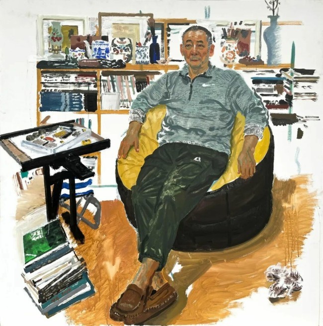 他的目光始终落向最平凡的生命状态:同事闲谈时微倾的肩、朋友静坐时松弛的腿、日常着装里自然的褶皱,甚至器物摆放的随意角度,都是他画布的主角。他从不用戏剧化的冲突装点画面,也不刻意美化生活的轮廓,只是以现实主义的坦诚,把平凡生命的舒展原原本本托出。那些未加修饰的神态、不刻意规整的姿态,是他对“当下”最真切的凝视——不是时代命题的宏大注解,而是每个个体都曾经历的“日常瞬间”:或许是午后客厅里的静默相对,或许是画室里伴着颜料气息的闲聊,或许是某个松弛的片刻里,眼底漫开的平和。