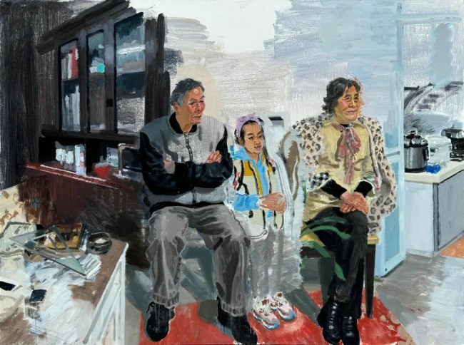 他的笔端带着学院派沉淀的坚实,却未被技法的规整缚住气息。重体积与素描的精准,让每一处形质都立得住脚,仿佛伸手便能触到人物衣料的褶皱、器物的棱角;而宽厚饱满的方笔触,是他与对象对话的独特方式——不追求即兴挥洒的潇洒灵动,却在迟疑与反复的运笔里,叠起生活的“量感”。色层在反复深入中交融渗透,像日常里时光的晕染:没有刻意的浓艳堆砌,却在沉稳的基调里藏着丰富的层次。这种技法里的“本分”,让他的画离“真实”很近——仿佛那些人物不是画在画布上,而是正坐在你我身边,带着刚沏好的茶的温度。