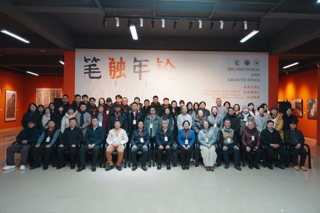 随后,徐勇民教授和孟宪德教授分别发言,分享他们的参展感受与艺术心声。徐勇民教授说道,艺术家应主动思考如何在时代变迁中释放自己的创作空间。希望通过这样的交流,能激发年轻一代在坚守传统内核的同时,勇敢探索绘画艺术在当代的创造性。孟宪德教授谈到作为深耕北方黑土地的艺术创作,蕴含着北方的深厚与辽阔,与南方灵动深邃的水墨作品相遇、碰撞。他期待这场师生联展不仅能展示各自的探索成果,更能促成更深层的学术互鉴。