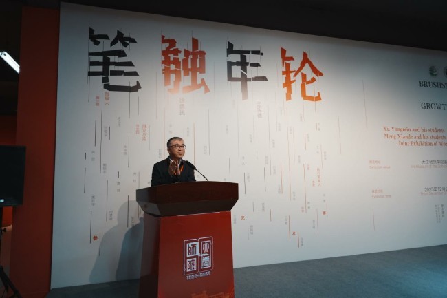 哈尔滨师范大学党委副书记郭砾在讲话中谈到,孟宪德教授与其优秀学生的作品在此展出,展现的正是哈师大美院薪火相传的学术脉络与生生不息的艺术活力。我们尤为荣幸的是,能与我国美术教育界德高望重的徐勇民教授及其师生团队同台展出。此次徐教授师生作品的到来,为我们带来了长江流域灵动秀润的艺术气息与深邃的人文思考,这无疑是给我们,特别是给大庆、给黑龙江的艺术爱好者们,送来了一场极为珍贵的精神盛宴和学术厚礼。