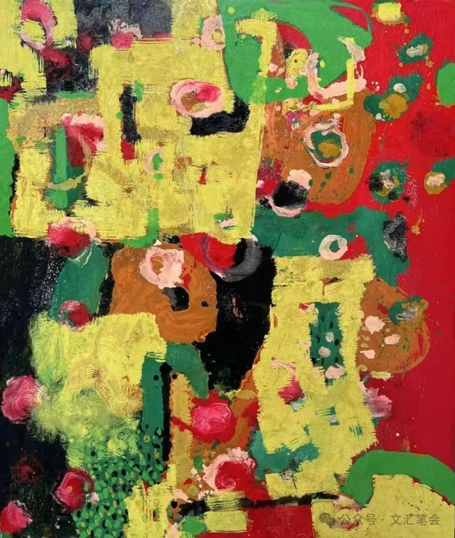 我扭头在画室里扫了一圈。画就在身后,就在四周,每一幅都那么恣意汪洋,绚丽明亮得既欣欣向荣,又分明荡漾着一股在天地间我行我素的浩大霸气。作为小说家,我总是相信人的来处,终究会无孔不入地一点一滴渗进生命里,并因此悄然左右一个人的性情与行为,可是坐在这个工作室,坐在这些没有一丝阴郁低迷气息的画作间,却发现它们与作者家族几代人悲欢离合的故事反差实在太大了。另一个反差来自唐承华:往事里再难再苦,他款款道出来时,却是那么轻松自在,脸上始终是笑,仿佛不过复述了一部欢快的电影、一篇轻盈的小说。