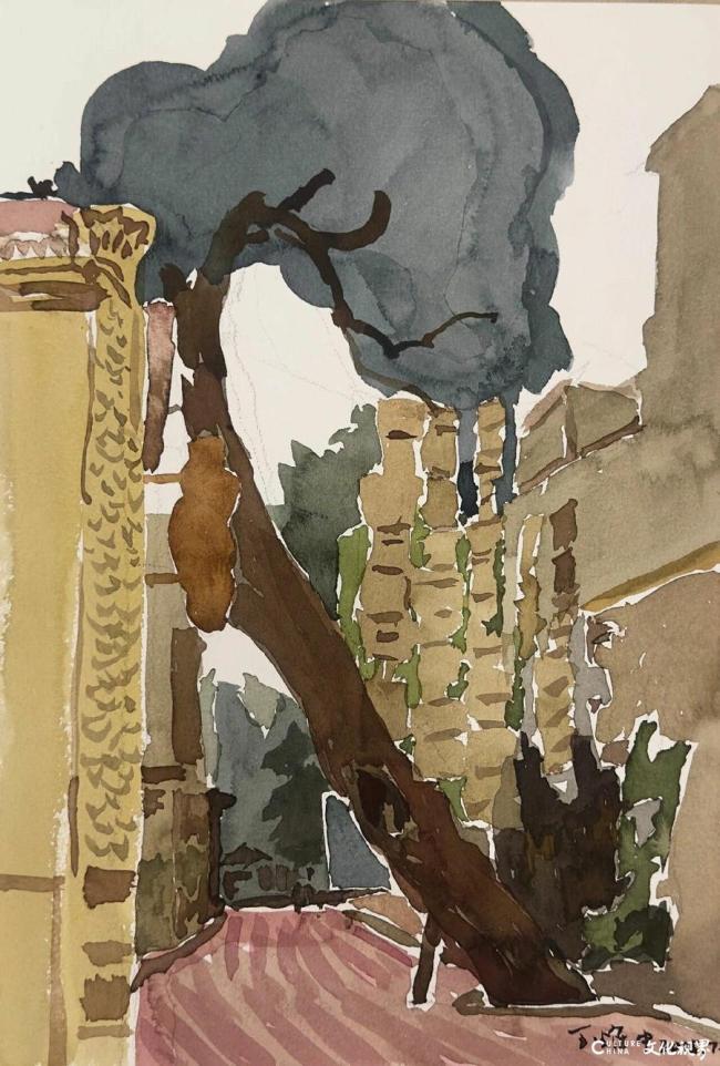 他的视线始终锚定“寻常”:乡村院落里聚谈的人群、田间地头挎着布包的身影、石榴树坠着饱满果实的枝桠,或是河湾处被暮色晕染的崖壁,没有刻意经营的戏剧冲突,只有生活流里的片段。这些题材里藏着他的观察姿态——不是“采风式”的猎奇,而是以参与者的熟稔,接住那些被匆匆路过的瞬间:妇人垂着肩颈挤牛奶的松弛、老妪并肩走时轻挨的手臂、树下蜷着的土狗半眯的眼,都是无需注解的日常,却被他抻长、定格,成了有呼吸感的画面。