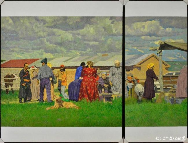 这些作品的动人处,正在于“不放大”的本真。他不借“乡土叙事”的框架抬高作品的分量,也不用先锋技法制造距离,只是以平实的观察,把生活里的松弛与温热如实托出:聚谈的人群没有刻意的“淳朴”表情,只是自然地站着、说着;挤牛奶的动作没有戏剧化的张力,只是安稳地弯着腰;石榴树不是“意象化”的符号,只是枝桠坠着果实的寻常模样。这种“朴素的精准”,让观众在熟悉的场景里看见被忽略的美——原来日常的褶皱里,藏着这么多温润的细节。
