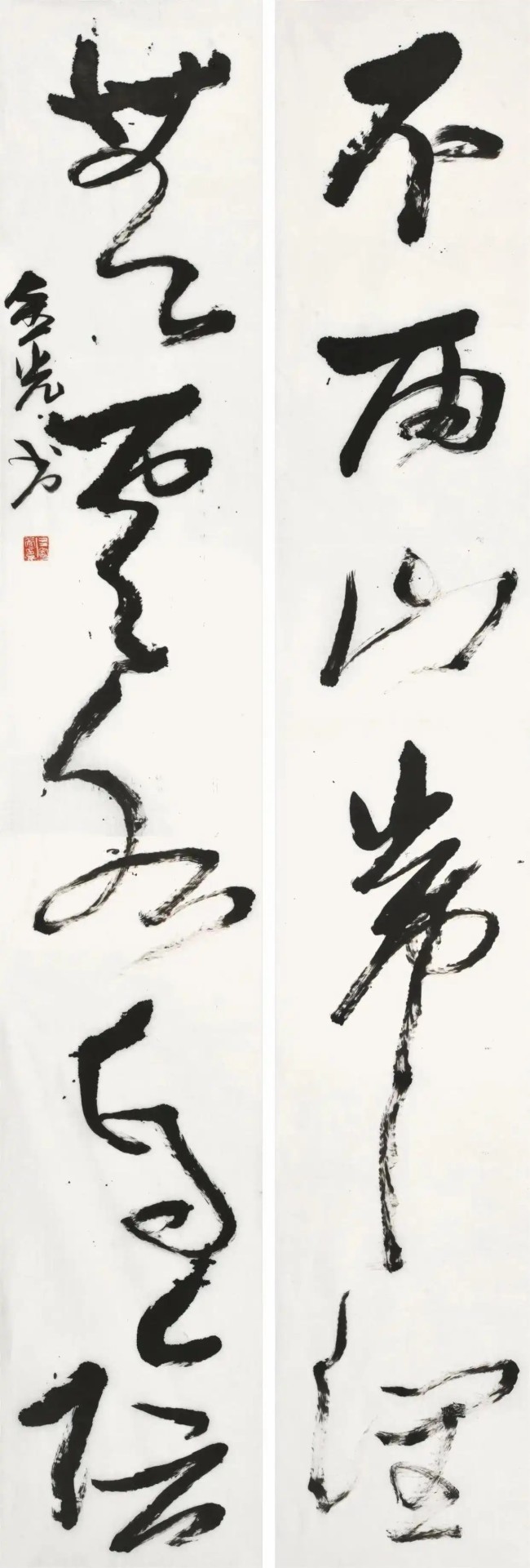 观察他近期的作品,不难发现,他的草书世界里又增添了新的元素——浓厚的“碑的意趣”。如果说他早期更多地是在帖学的范畴内,追寻明清书家那种率意挥洒、行云流水的笔墨情趣,那么今天的他,则明显地将目光投向了更为古老、更为雄浑的碑刻艺术。