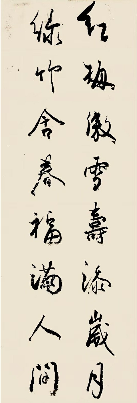 若论其结字与章法,更能见其匠心独运处。他的字法,往往在欹侧与平正之间寻得微妙的平衡。初看似乎不拘常格,带有几分天真随性的意趣,仿佛信手拈来;细察则发现每个字的重心都落得稳妥,奇崛的姿态之下是内在结构的严谨支撑。这种“似欹反正”的智慧,赋予单字以生动的姿态与表情,如同姿态各异的山石树木,自有其屹立的风骨。而当这些个体汇聚成行,连绵成篇时,便形成一种气韵贯通的生动局面。