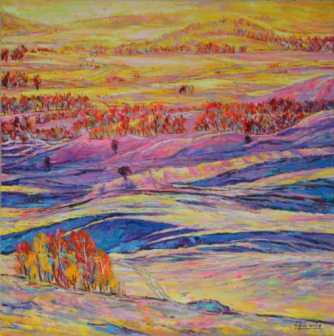 塞外初雪映朝晖(100cm×100cm)