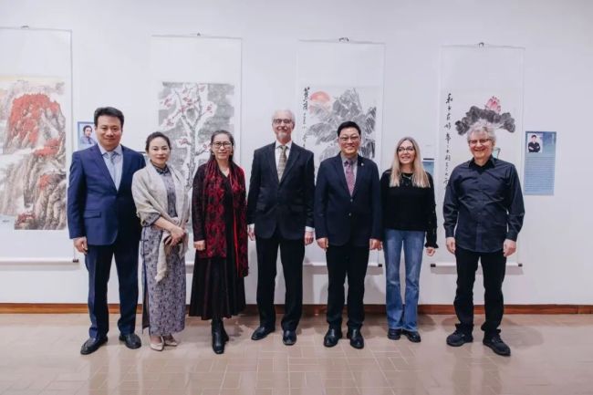 美方策展人罗伯特·格林教授在致辞中,深情分享了策展的心路历程。“当我首次近距离领略中方艺术家的水墨作品时,便被笔墨间流淌的东方哲学与诗意神韵深深震撼。”他坦言,过去数月,团队与江苏省中国画学会同仁跨越时差与山海,反复磋商、精雕细琢,从展品遴选的精准匹配,到展厅动线的美学设计,每一处细节都凝聚着两国团队的真诚与热忱。艾比林基督大学始终以“促进跨文化理解、培育全球视野”为核心办学理念,此次展览正是这一理念的生动实践。他展望道,未来将持续推动双方艺术家互访、联合创作、学术研讨等长效合作机制落地,让艾比林成为中美艺术交流的重要驿站,让更多美国民众通过笔墨读懂中国的深厚底蕴,也让中国朋友真切感受到美国艺术的热情与多元。他同时对中国驻美国使馆派员出席本次开幕式,并对中美艺术机构之间开展的交流合作所给予的支持与协助表示感谢。
