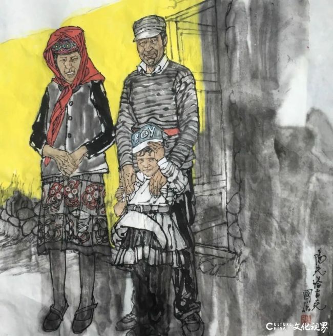 在题材选择上,马国强始终锚定“人民”二字。从胶东田野间躬身耕耘的基层干部,到帕米尔高原上守望家园的塔吉克族人家,从延边春日里沐风而立的朝鲜族少女,到苗寨花间饰满银铃的盛装女性,他的笔端始终聚焦普通人的日常肌理。这些人物绝非流于表面的符号化“他者”,而是浸润着烟火气息、承载着生命质感的鲜活个体:高原儿女的皱纹里凝着岁月风霜与天地辽阔,海边劳作的女性背影中藏着与潮汐相伴的坚韧底色,即便舞台上的舞者,也能在肢体的舒展与张力间,泄露出民间艺术根植沃土的原生野性与蓬勃生机。