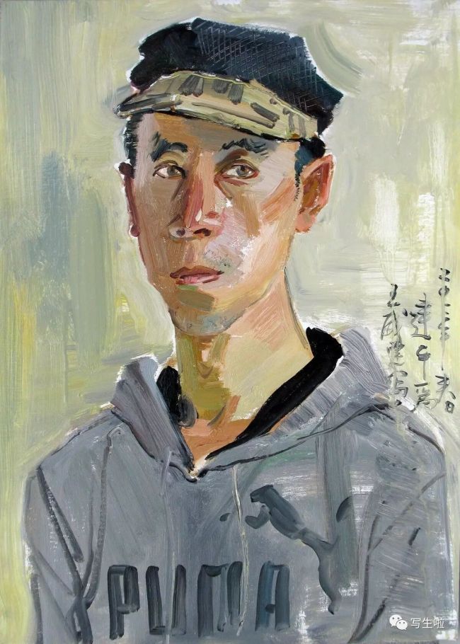 戴皮帽的王威布面油彩80cm×60cm2012