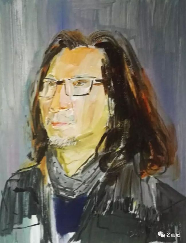 从小喜欢石涛、八大的孙建平,经常在正式的教学之余进行写意的实验。他的实验很简单,就是和同学们喝酒,酒后乘着酒兴给同学们画像。他常常从这些实验中得到意外的收获,从中快乐无穷。他崇尚还是在那80年代他从赵无极先生那里学来的“冒险”实验,他也同意刘骁纯先生讲的写意绘画的精髓就是“破”,觉得“无法之法”才是上法。他觉得多年来接受的规矩束缚太深。所以他画画没有定法,在你看似已经完成时。他可能刮刀一抹,又重新开始,他觉得只有不择手段地破,才能获得意外的效果,才能进步。