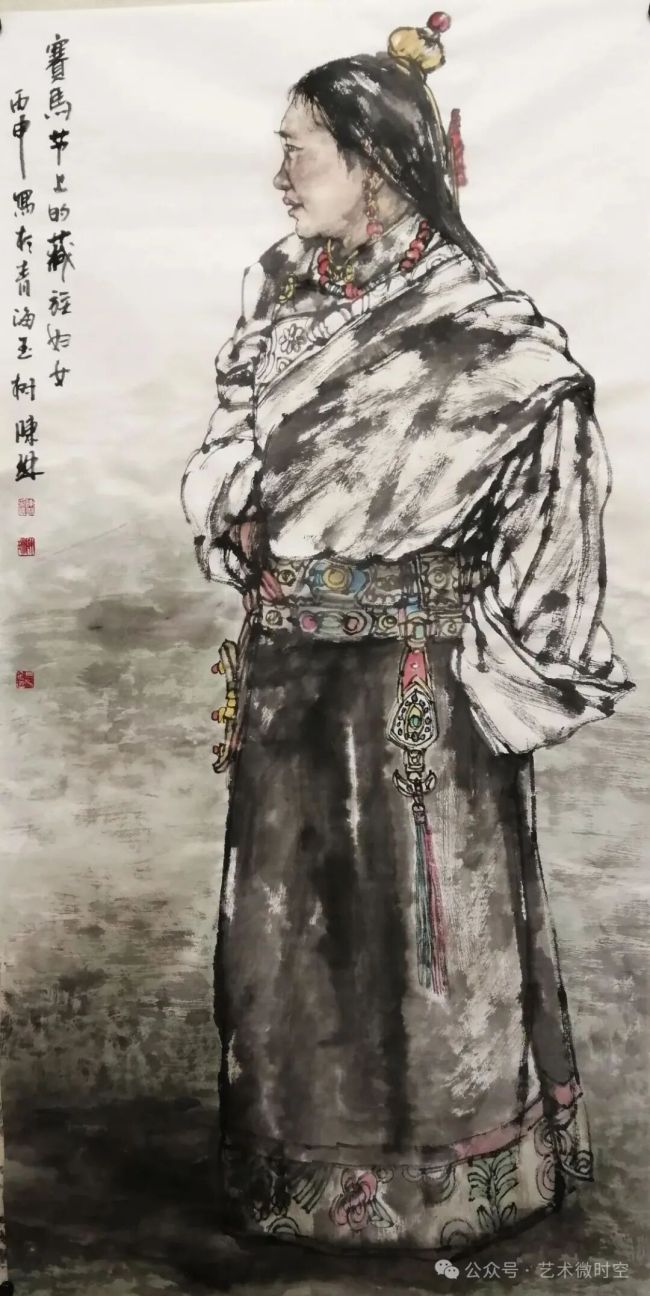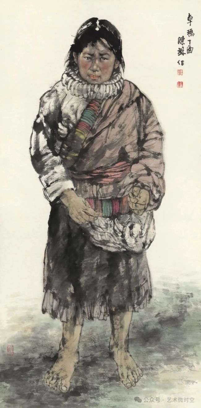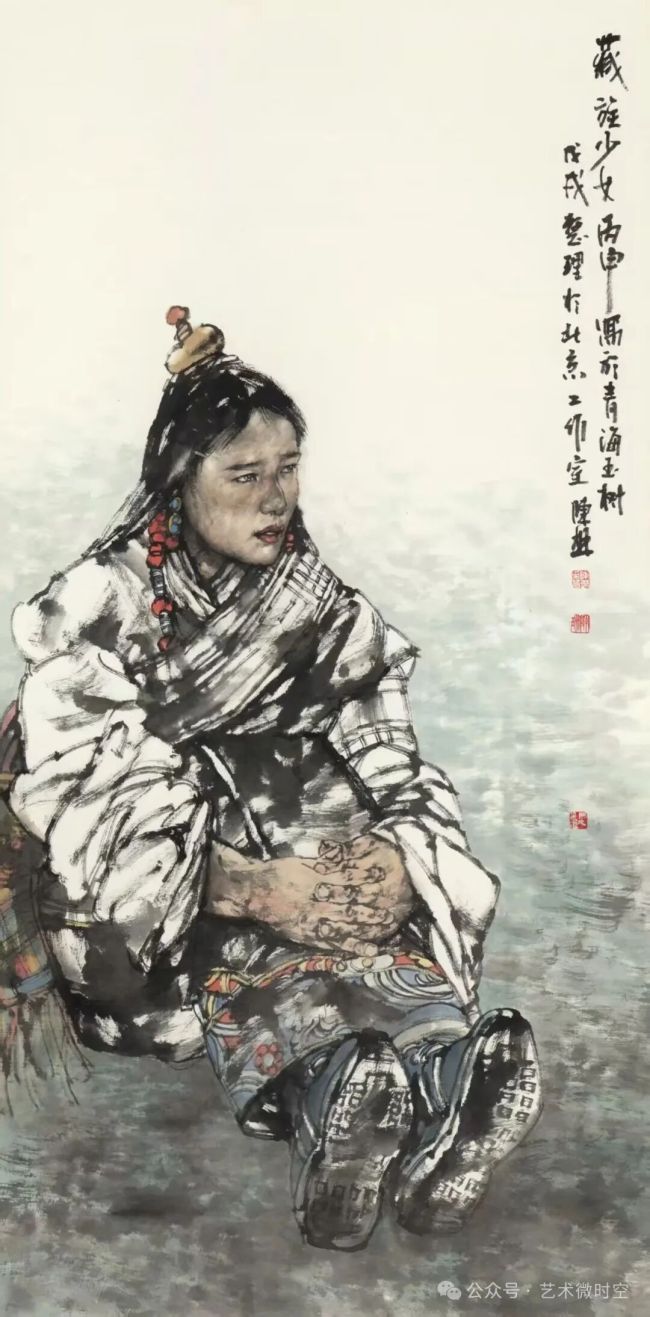 陈琳的人物写生,还蕴含着深厚的人文情怀与民族精神。他深入少数民族聚居区与市井街巷,将镜头对准那些平凡而伟大的生命,用笔墨记录下他们的生活状态与精神风貌。在他的作品中,我们看不到刻意的猎奇与炫技,只有对不同民族文化的尊重与对普通百姓的共情。他笔下的少数民族人物,身着特色服饰,佩戴精美饰品,每一个细节都经过精心刻画,既展现了民族服饰的独特之美,又传递出民族文化的深厚底蕴;而市井中的普通百姓,虽衣着朴素,却有着坚韧的生命力与质朴的人性光辉。他的作品,是对民族文化的传承与弘扬,也是对人间烟火的深情礼赞,让我们在水墨的氤氲中,感受到不同民族的独特魅力与普通生命的珍贵价值。