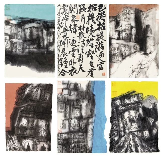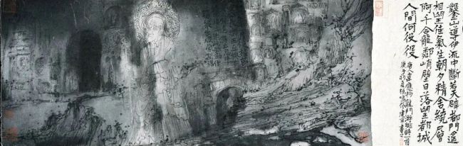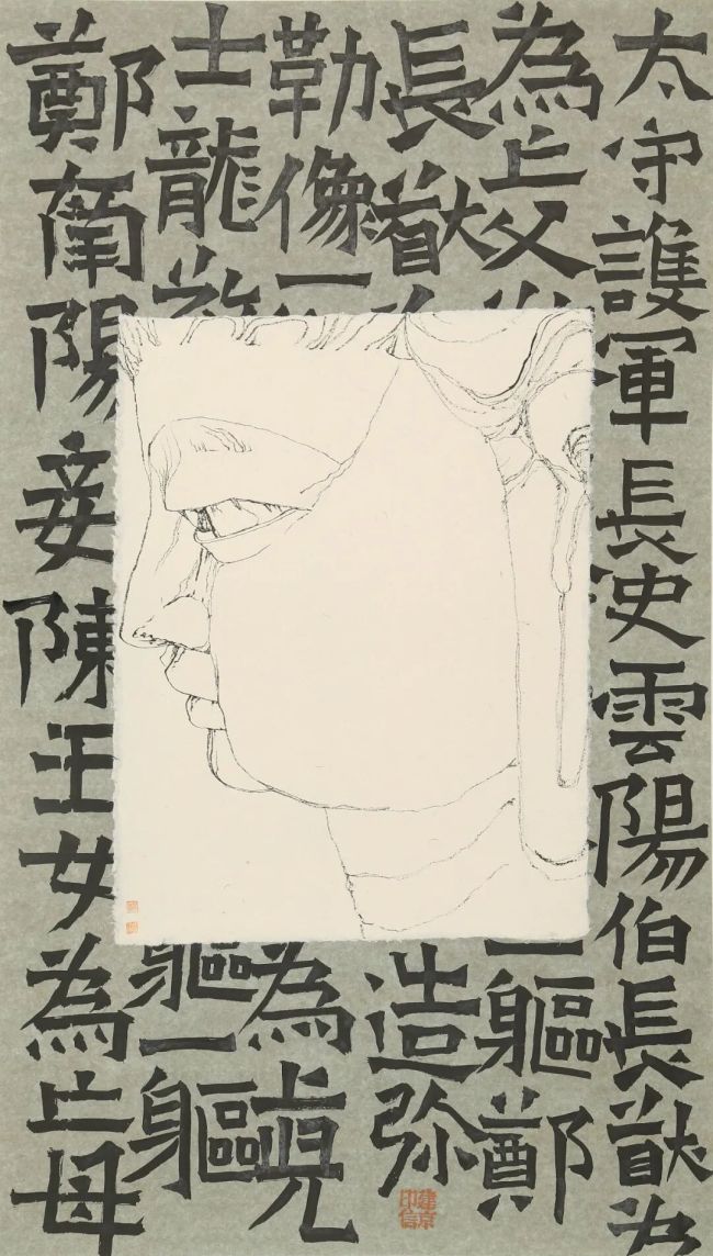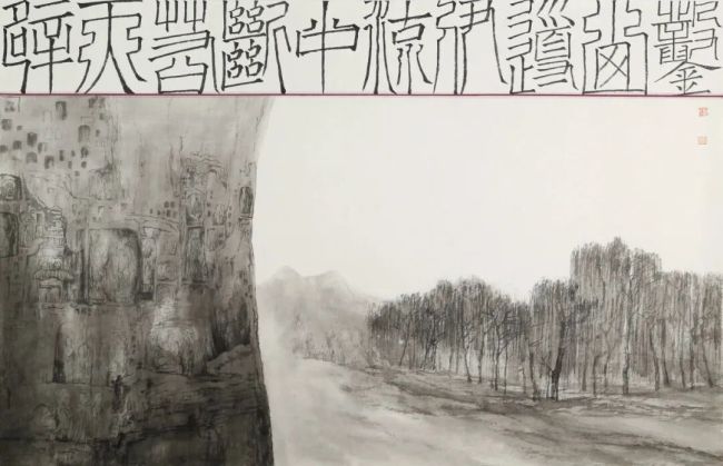 另外,还有一种创作,就是把龙门石窟的综合性特征与艺术元素尽可能地丰富地体现出来。比如,有线描的形式,有拓片的形式,有石刻的形式……努力呈现成为一个集成艺术。其实,龙门石窟的艺术用之不竭,丰富浩瀚,在这里有很多滋养本土艺术的营养与精华,然而,无论用什么样的方式去表达,只要心怀敬畏,感动心魄,无论写实无论写意,无论表现无论再现……龙门石窟都将存留于笔底襟怀,精彩无限……