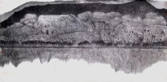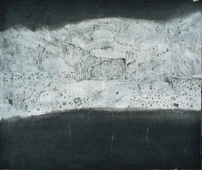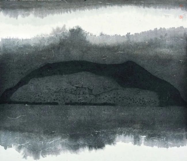 此次的作品更上层楼,那几幅黑白小品,在一层层一道道水墨渲染中,将龙门景观图式化、图腾化,空灵变幻,引人遐思。