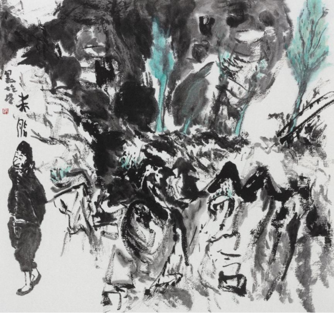 在他看来,写生的关键在于“现场触动”,远比画多少幅作品更重要。“照片能记录形态,却抓不住风的粗粝、土的厚重,只有双脚踩在陕北的土地上,才能真正感知其内在气韵。”他坚持毛笔直接写生,不用铅笔打底,以宣纸、册页为载体,让笔墨在现场即时反应自然肌理——用焦墨重笔表现黄土的雄强朴拙,以灵动点线捕捉枣林的生机,墨色的枯润浓淡皆随现场感悟生发,而非套用传统程式。