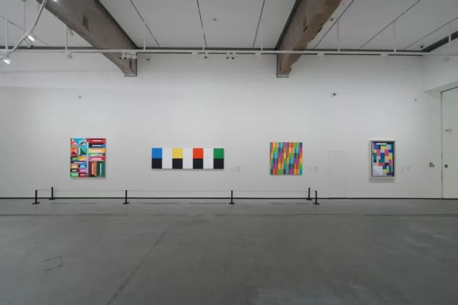 策展团队采用了“双通道自由步入”的方式,同时巧妙地运用了牛顿的色轮模型,将展厅划分为红、白、蓝、黄、黑、绿、粉等七个色彩单元,以及一个综合的彩色区域。在不同颜色区域中,西方现代艺术大师与中国现当代艺术家作品相互并置,策展团队并未回避差异,而是刻意凸显色彩在不同文化语境中的巨大语义鸿沟与偶然的共振。