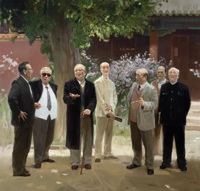 殷雄《岁月流金——夏衍和同行者》油画200×236cm