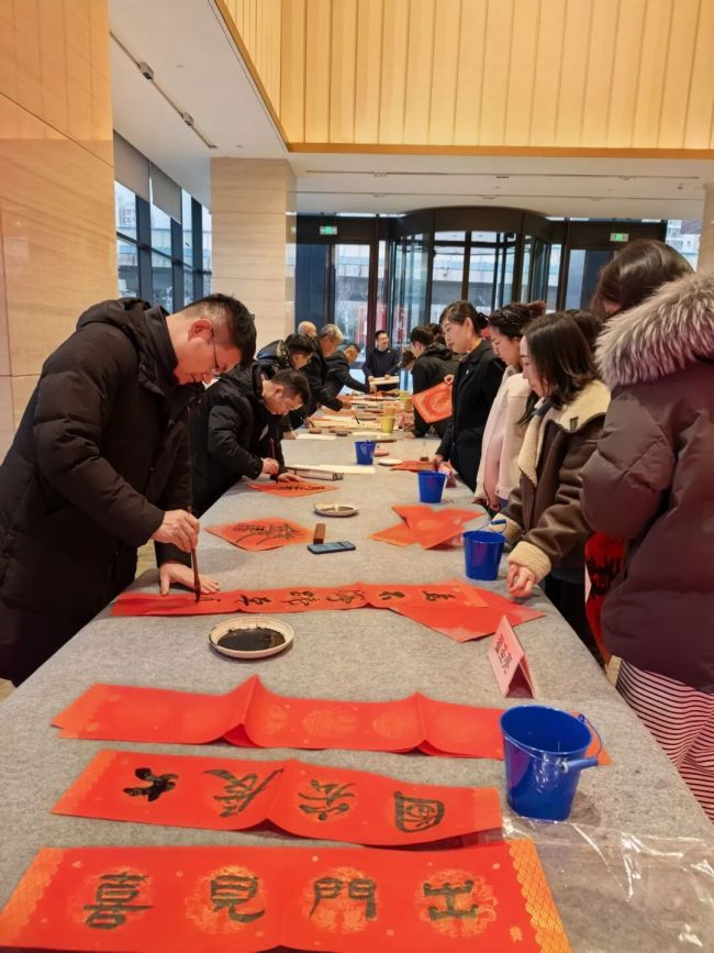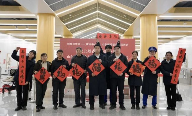 2026年2月9日至11日,山东画院组织书画家到济南地铁唐冶站开展文化惠民系列活动,慰问轨道交通一线干部职工,为进出车站的乘客写春联、送“福”字。