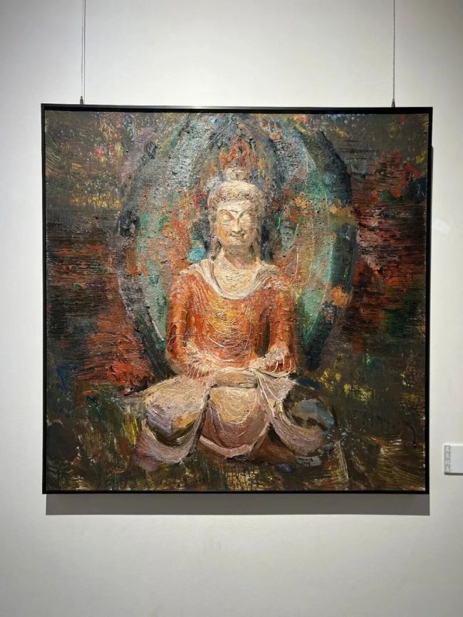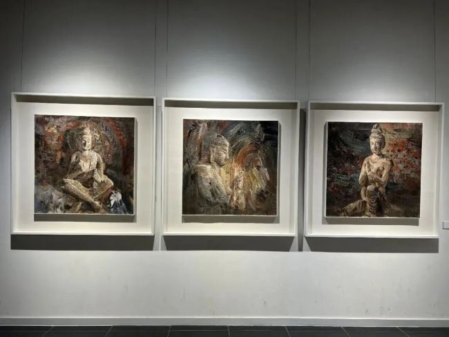 在本次画展中,《归德古城》《石窟寺》《敦煌》等作品以独特的笔触和画面肌理,还原了文物的历史质感,表现了中原古城的厚重与石窟造像的沧桑,传递出中原文化的源远流长。