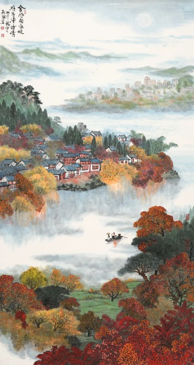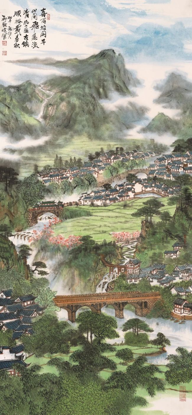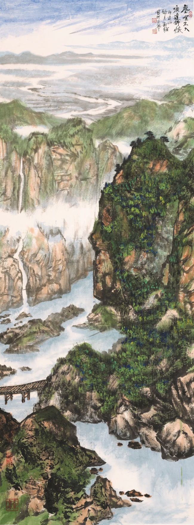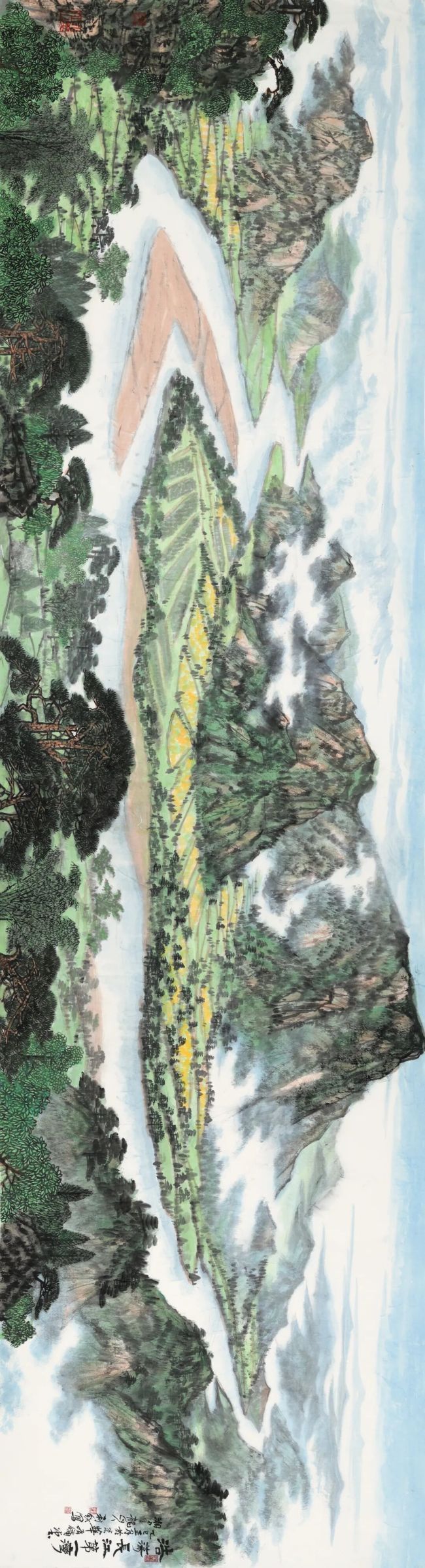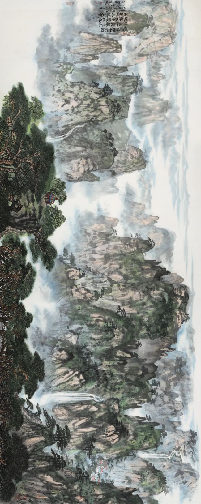 他的作品并非单纯地再现眼前的自然景色,而是通过独特的艺术手法,将素材升华为承载文化记忆与时代精神的视觉符号。无论是层峦叠嶂的雄奇,还是烟村水郭的温婉,都蕴含着他对自然、对生命、对文化的深刻思考,让古老的山水画在当代语境中,依然能触动人心、引发共鸣。
