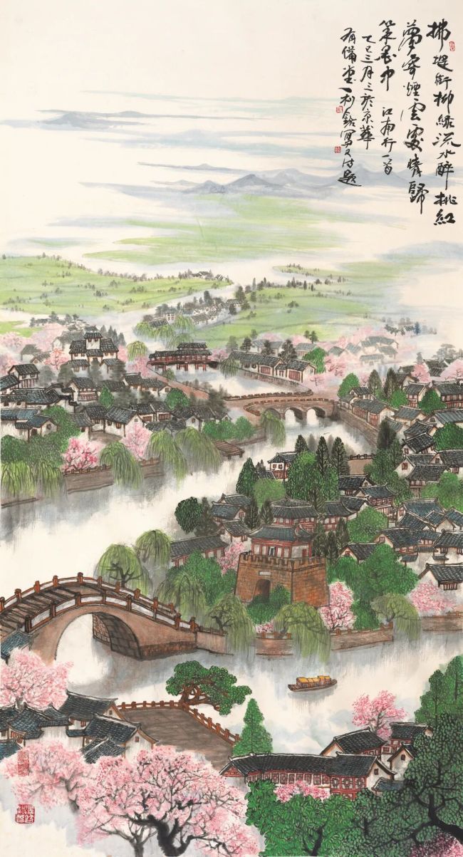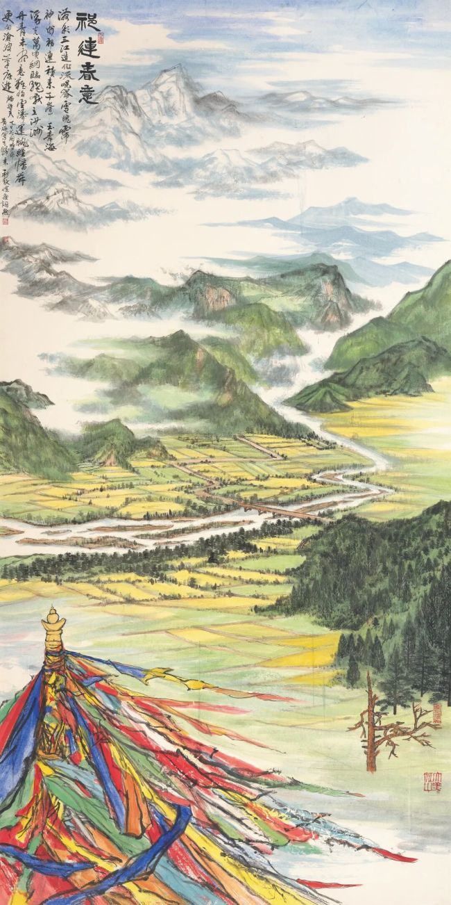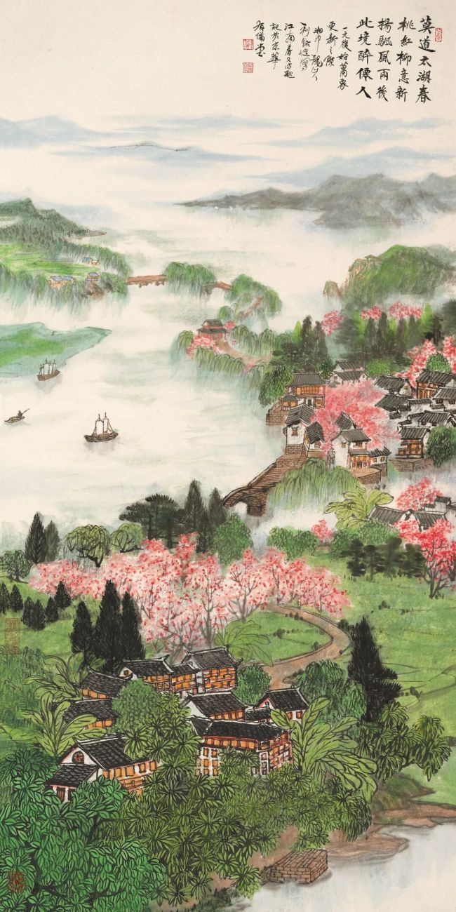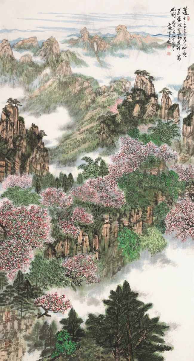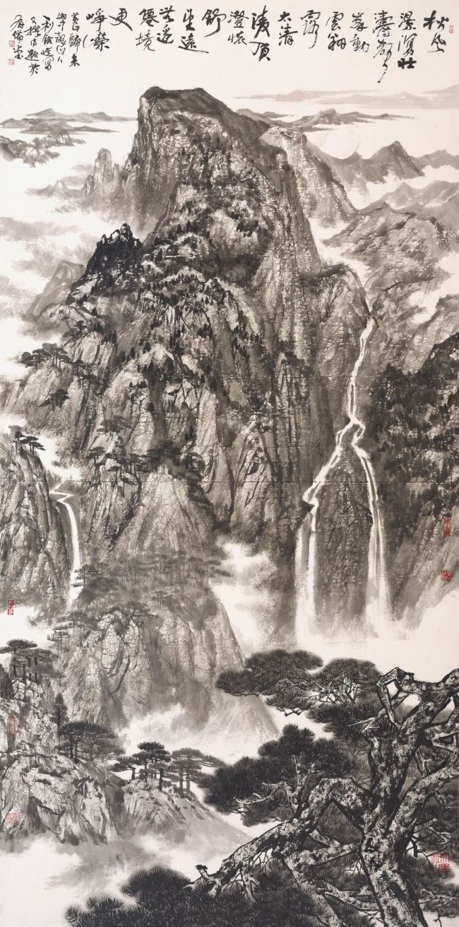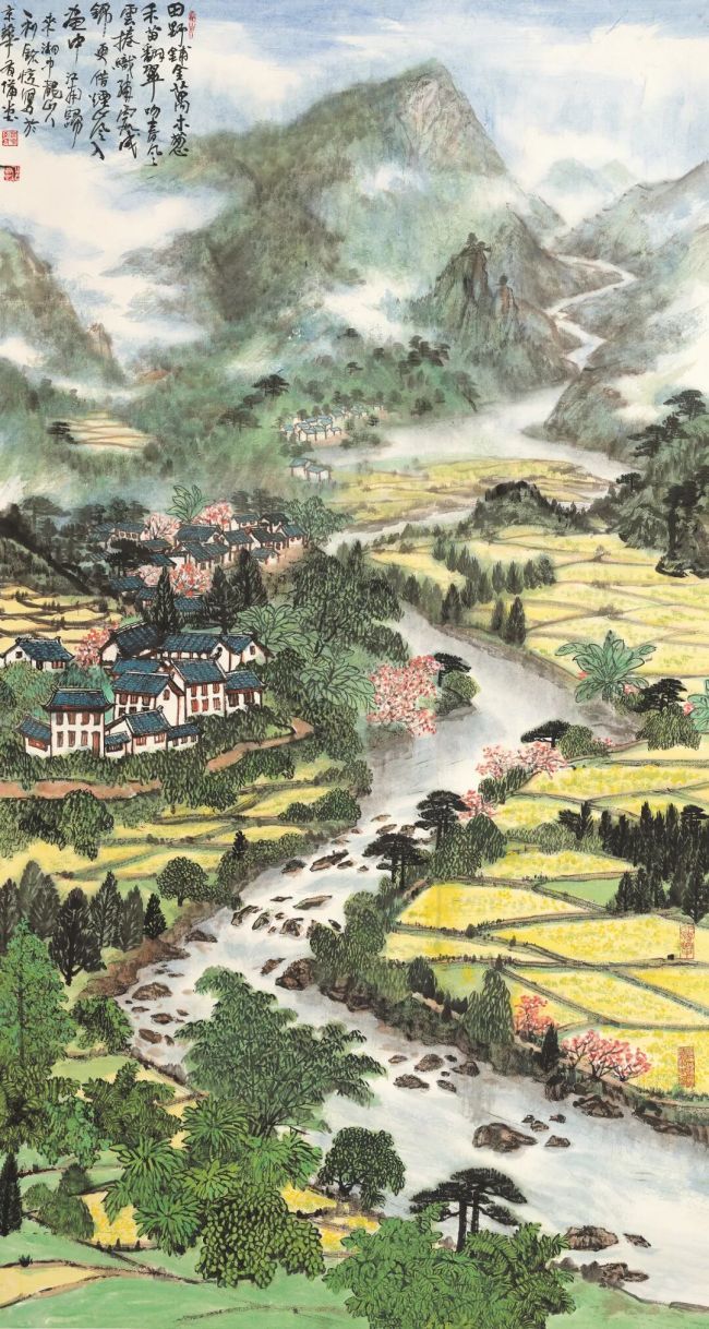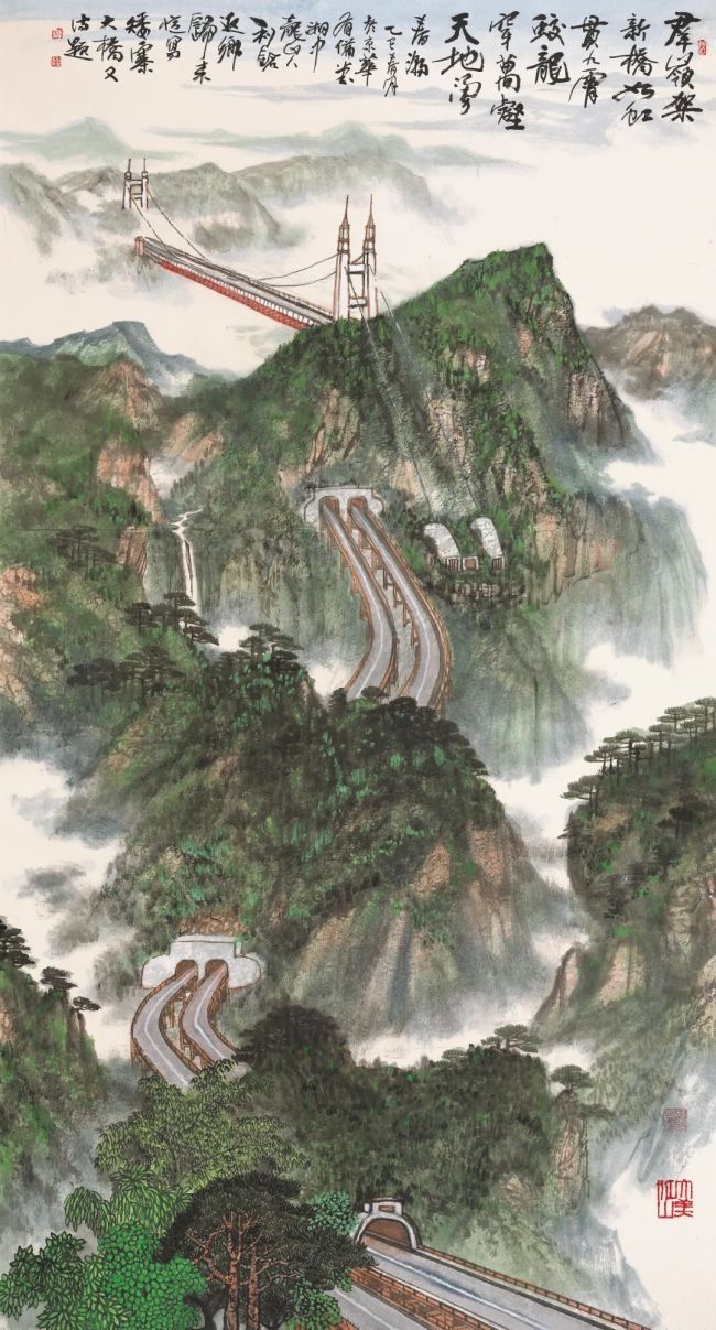 他的作品并非单纯地再现眼前的自然景色,而是通过独特的艺术手法,将素材升华为承载文化记忆与时代精神的视觉符号。无论是层峦叠嶂的雄奇,还是烟村水郭的温婉,都蕴含着他对自然、对生命、对文化的深刻思考,让古老的山水画在当代语境中,依然能触动人心、引发共鸣。