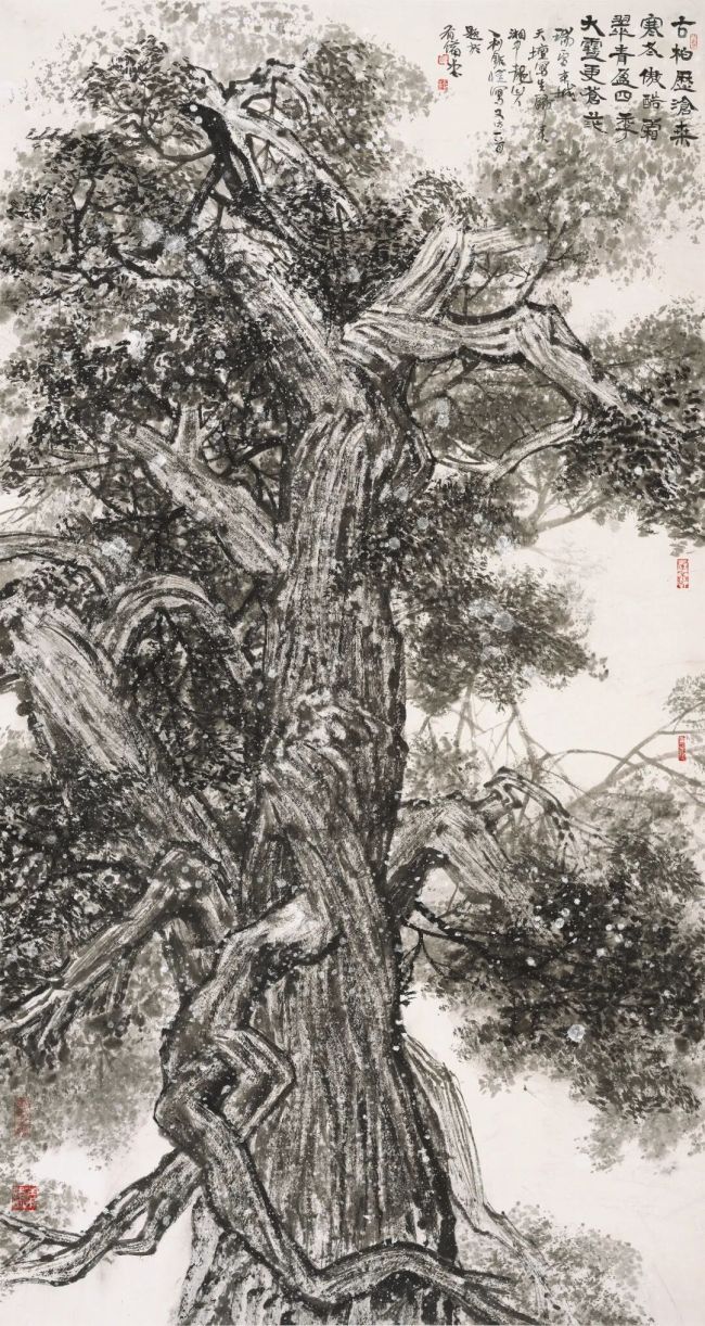 他的题画行草与画中笔意浑然一体,或若虬松盘屈,或类流泉婉转,字与画相映成趣。这种“以书入画”的实践,让他的山水作品既有北派山水的雄浑骨力,又不失南宗水墨的文秀气韵,在刚与柔、疾与缓的对立统一中,构建出独特的笔墨秩序。