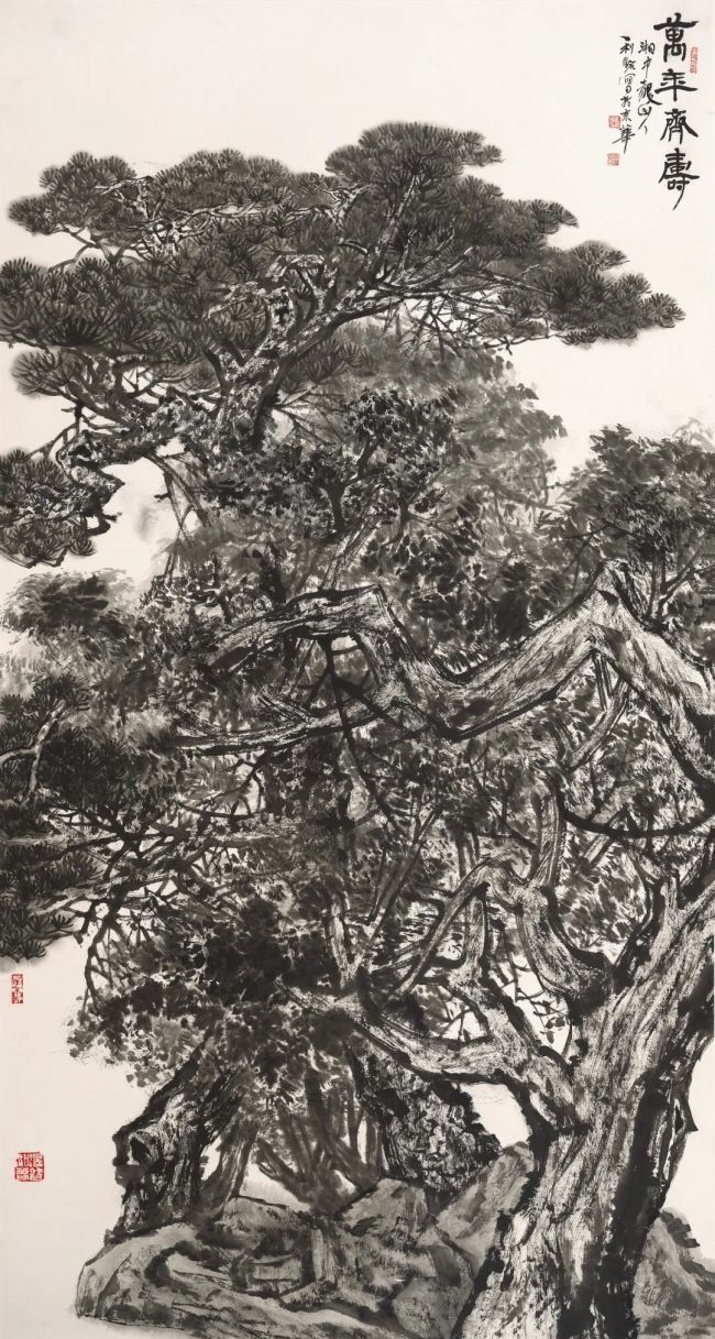 在他的作品中,墨色的浓淡干湿变化万千:浓墨如泰山压顶,淡墨似薄雾轻笼,干笔皴擦出山石的嶙峋,湿笔晕染出草木的华滋。这种对墨法的精妙掌控,让画面既有“混沌初开”的苍茫感,又不失“烟霞满纸”的灵秀气,于虚实之间营造出可游可居的山水天地。