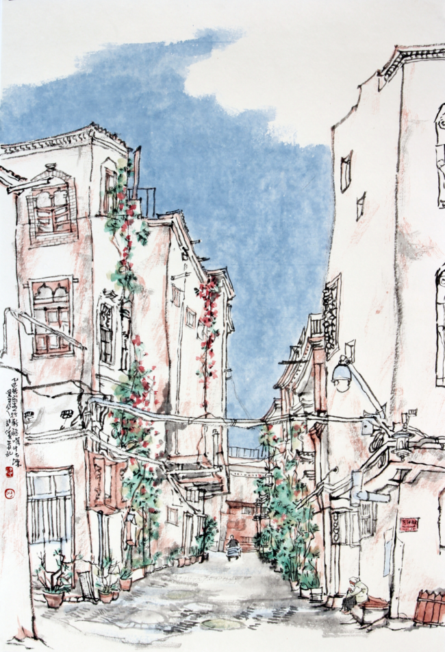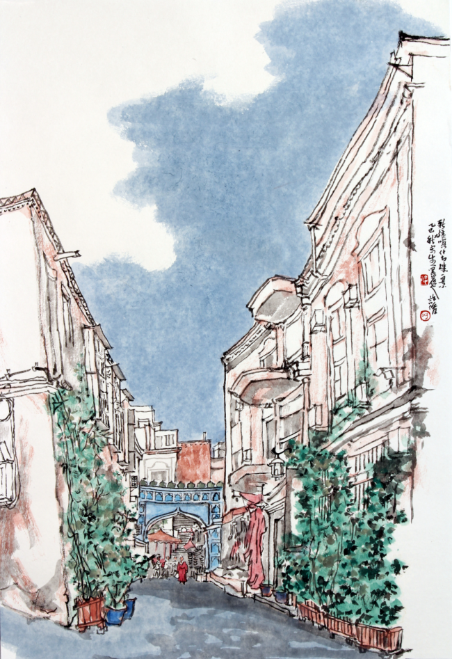 许俊的写生,从来不是简单的景物复刻,而是心与物的对话,是小我与大我的交融。作为成长于都市的现代画家,他以当代文化人的视角观察山水、体悟自然,将对生活的思考、对时代的感悟融入写生创作中,使作品超越了单纯的写景范畴,承载着深厚的文化情怀与精神内涵。他笔下的景物,既有自然的清旷空灵,又有文人的诗意雅致,看似简约的画面,却蕴含着丰富的情感与哲思,为快节奏生活中的人们提供了一处心灵的休憩之地。