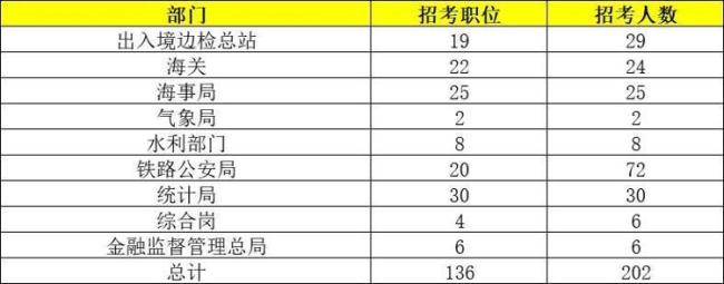 根据上表,职位报考空缺主要集中在各地的统计局、铁路公安局、海关、海事局、银行、海关、出入境边检总站等。仅统计局就有30个岗位空缺。其中报名人数较少的职位多分布在“基层民警”“境外边防”“警长”等相关岗位。这些岗位多分布在基层、一线,并且工作条件较为艰苦,对于考生的综合素质要求更高,有些还需要进行专业科目的考试,门槛相对较高。
