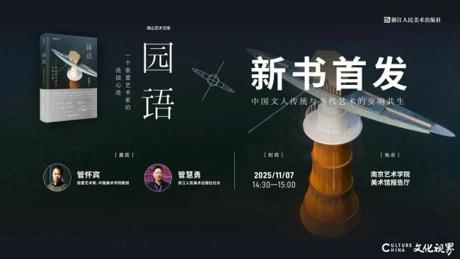 11月7日下午,《园语:一个装置艺术家的造园心迹》新书首发式与“云涯际:管怀宾作品展”开幕式同期举办。作品展由中国美术学院和南京艺术学院联合主办,南京艺术学院数智科创中心、中国美术学院跨媒体艺术学院协办,南京艺术学院美术馆承办,由浙江人民美术出版社提供学术支持。
