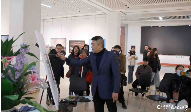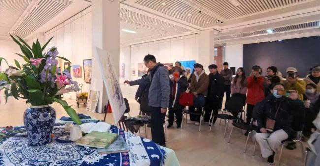 1月16日下午,“2026迎新春青岛市油画精品展”展厅内墨香与艺术气息交融,青岛市美协油画艺委会组织的现场静物写生活动在此温馨启幕。多位深耕油画领域多年的资深艺术家亲临现场,以画笔为媒,以实践为桥,为到场的油画爱好者们带来了一场沉浸式的艺术教学体验。