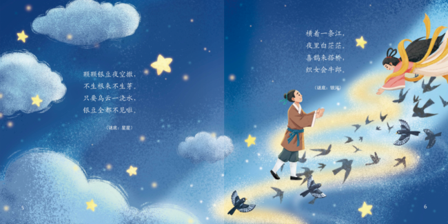 《童趣谜语》分为天体类、自然类、人体类、动物类,四个板块。内容均从《中国民间文学大系•谜语卷》中精选而出。一页一猜,让儿童从有趣的谜语中认识宇宙、走进自然、了解人体构造、熟悉动物的习性和特点。不仅能锻炼孩子们的思维能力,还能在游戏中学到新知识,体验谜语游戏的乐趣。谜底采用“刮刮乐”的形式进行揭晓,以增强孩子的参与感与趣味性。