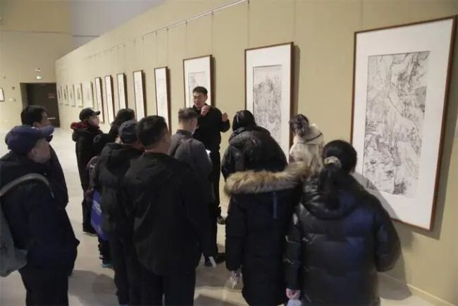 走进展览现场,讲解人员结合参加展览的经典作品,从笔墨技法、构图意境、创作理念等多个专业维度展开细致解析,对比新文人画与传统文人画的特点,阐释参展艺术家如何以笔墨为媒,在坚守文人画精神内核的同时融入当代审美与时代思考。